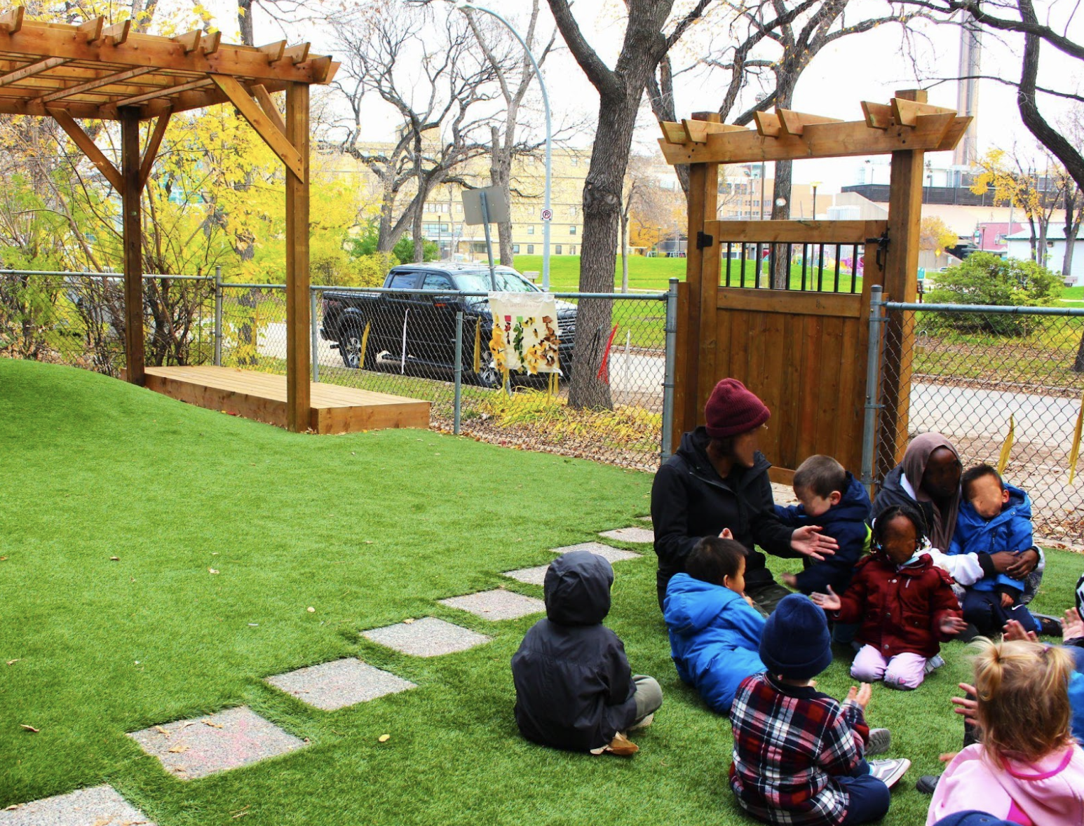 Project Goals: This commercial project was initiated by a daycare centre in Winnipeg’s Daniel McIntyre neighbourhood and was completed during the 2023 construction season. The centre was in dire need of renovations to its outdoor space, as the yard was in rough shape and becoming a hazard. The goals set for our designers were: new front stairs and landing, new and safe play area, new front pathway, and a new front gate for extra security. And it had to be able to withstand regular play!